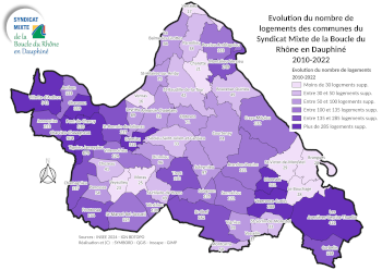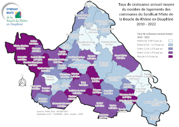 Les cartes ci-dessous montrent les évolutions relatives à la construction de logements entre 2010 et 2022, en nombre, en pourcentage et en croissance annuelle.