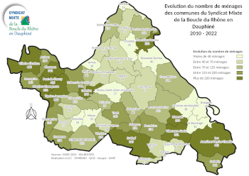 Les cartes ci-dessous montrent les évolutions relatives au nombre de ménages entre 2010 et 2022, en nombre, le nombre de personnes par ménages en 2022 ainsi que la différence entre le nombre de logements construits entre 2010 et 2022 et le nombre de ménages accueillis sur la même période